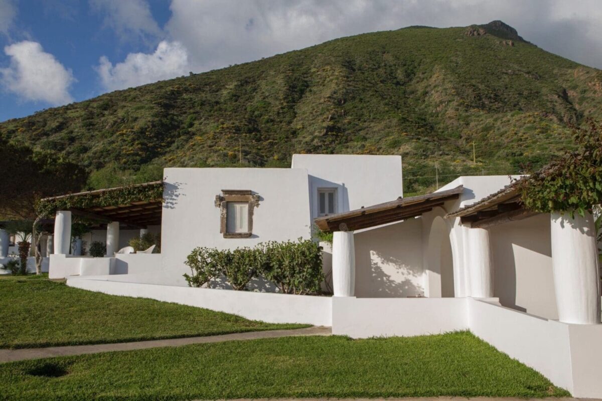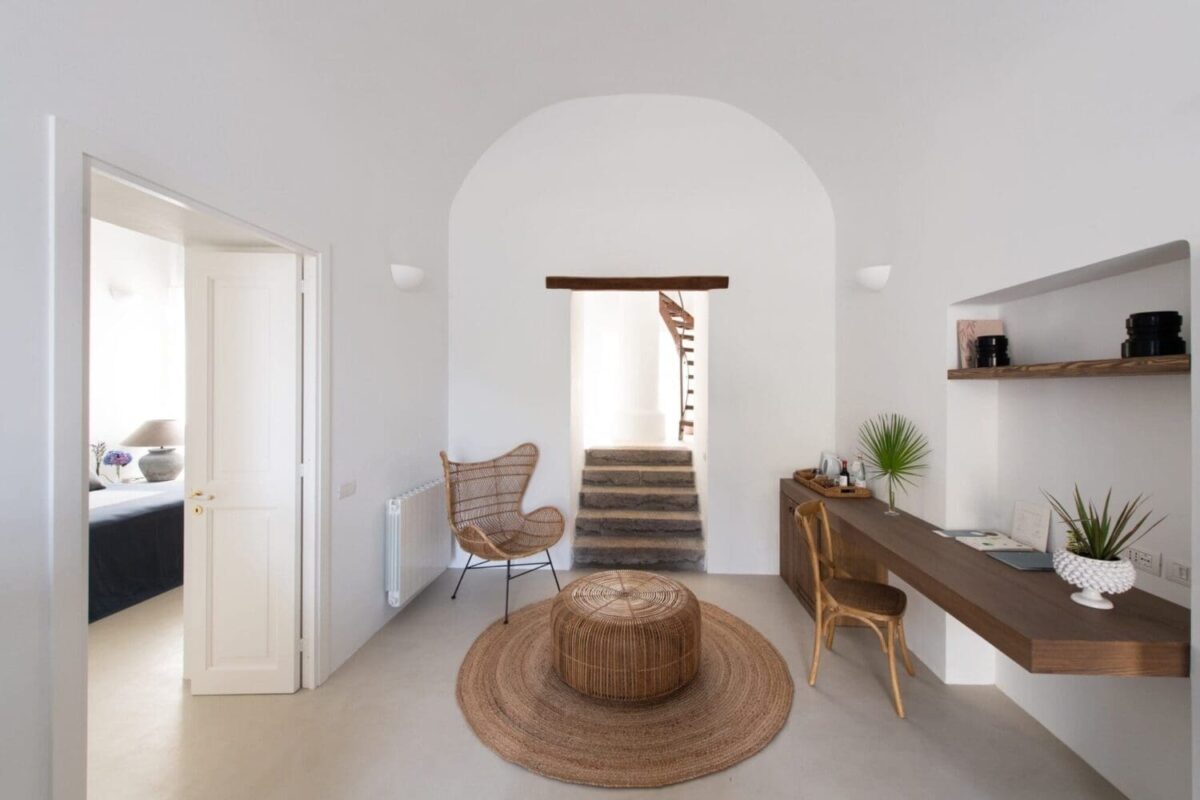 Capofaro’s 27 rooms and suites feature bright, minimal architecture and design, reflecting the Aeolian style. Whitewashed surfaces, white columns, and shadowy patios overlook the tranquil Mediterranean Sea, dotted by the other Aeolian Islands. The still operational historical lighthouse adds a unique touch, offering six beautifully appointed rooms and suites in the former guardian’s lodgings.