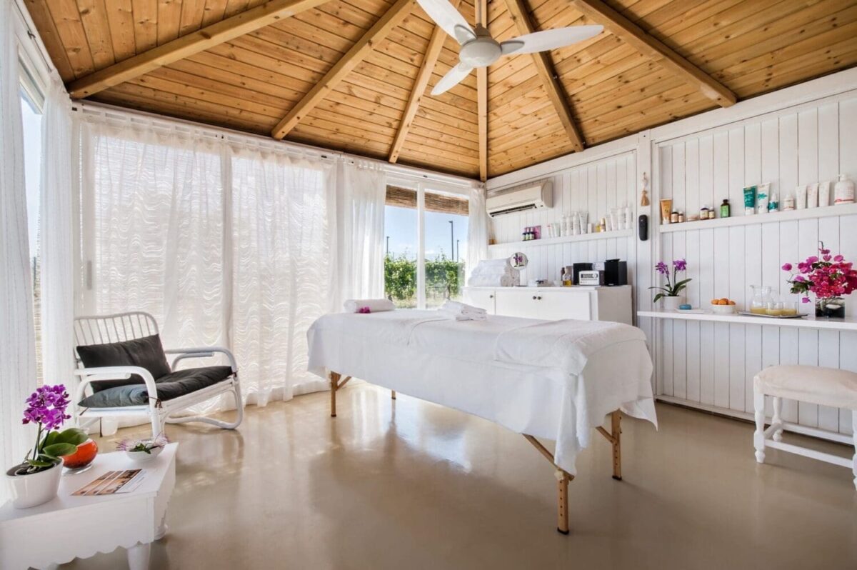 The property’s core includes a generous freshwater pool and spacious solarium terrace framed by vineyards and pinewood. The garden spa offers various holistic treatments, while sports lovers can enjoy padel tennis by the lighthouse. Daily yoga and meditation classes are held in multiple venues within the estate, enhancing the serene atmosphere.