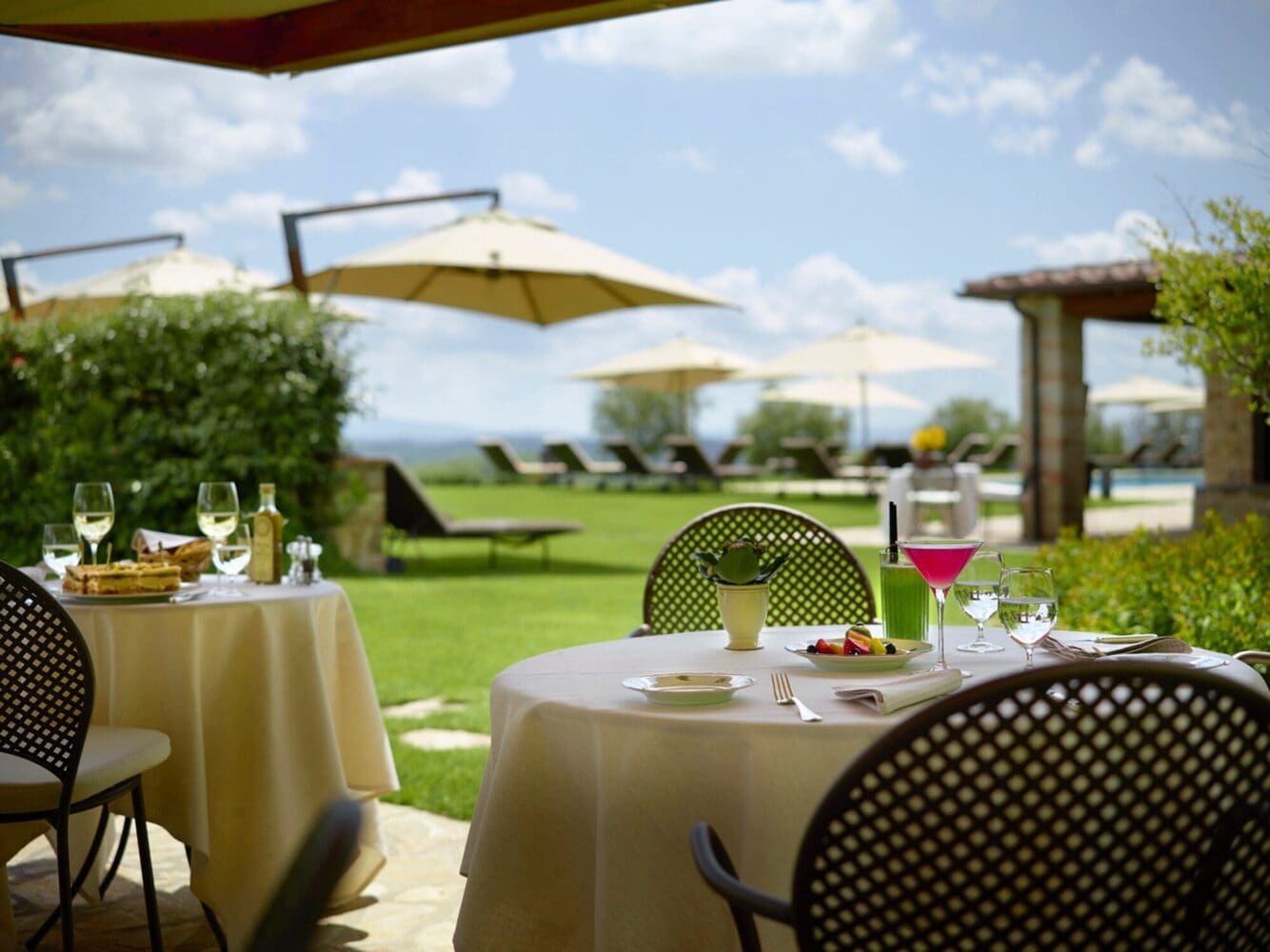 For couples seeking a truly unforgettable wedding, Hotel Le Fontanelle offers an exceptional venue. The main restaurant, with windows surrounding the entire area, provides amazing views of the rolling hills of Tuscany. It’s the perfect place to host your wedding reception, where you and your guests can dine while taking in the stunning scenery.