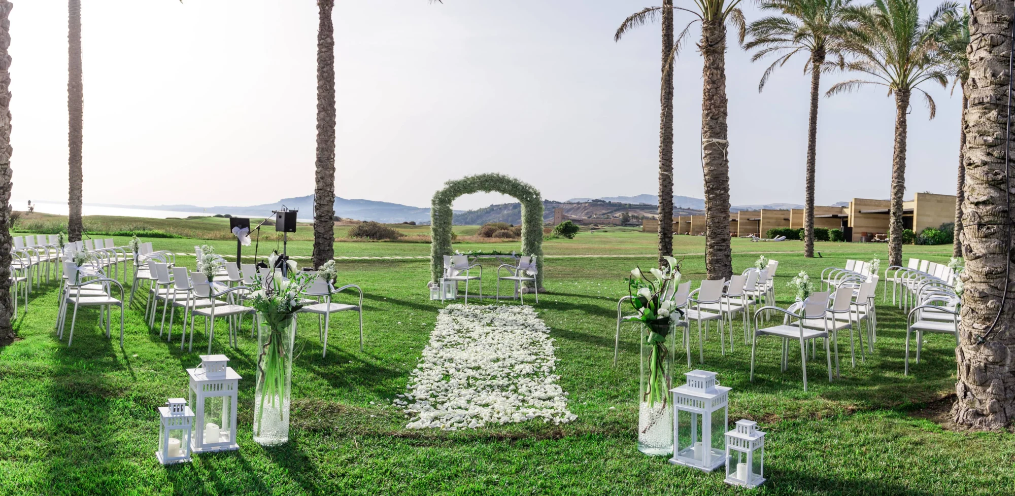 When dreaming of a Sicily destination wedding, look no further than Verdura Resort. Surrounded by the natural beauty of the southern coast of Sicily, you will be awe-inspired upon arriving at the property. Wedaways event experts guarantee Verdura is an outstanding location where your Sicily destination wedding will be an extraordinary experience. With a landscape of 230 acres, a stunning backdrop of the sparkling Mediterranean Sea, rolling green hills with olive and orange groves, and a golf course that drapes the landscape, these are just a few of the things that make a wedding at this Sicilian resort so special.