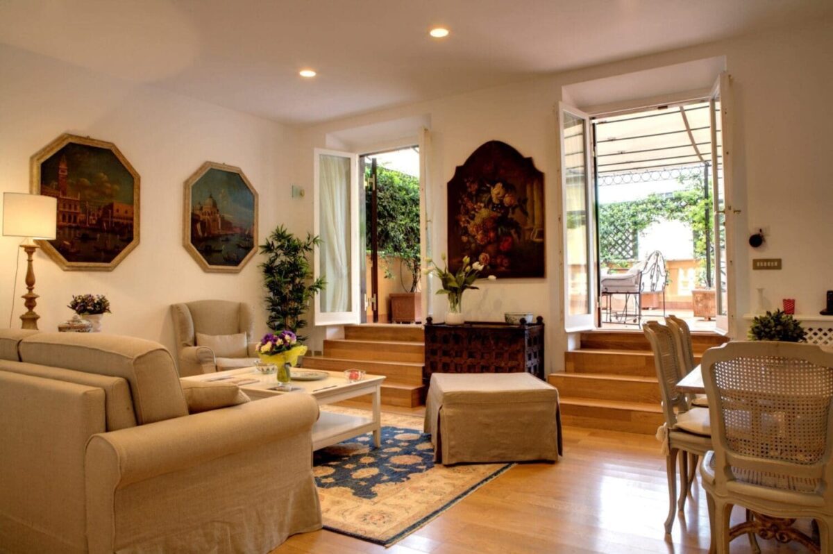 As guests step inside this Rome wedding villa, they are greeted by the exquisite Papiers Peints dining room. This elegant space is perfect for both intimate dinners and grand receptions. Furthermore, the villa can accommodate up to thirty guests, offering twelve luxurious rooms and suites, each furnished with antiques, lavish marble bathrooms, and enchanting garden views.